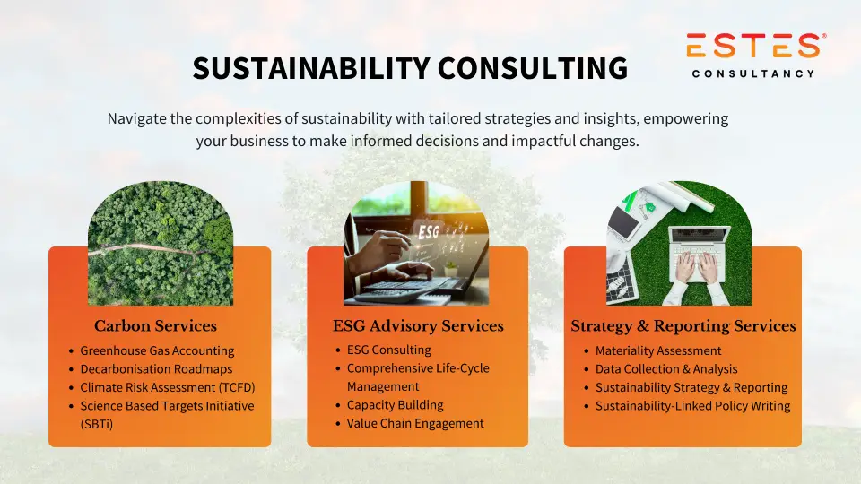 Looking to set realistic sustainability goals and decarbonization targets for your business? Estes Consultancy can help you create a comprehensive decarbonization roadmap tailored to your unique needs. As a leading sustainability consulting firm in Singapore, we specialize in guiding businesses toward sustainable growth while meeting industry standards. Whether you’re working towards net-zero emissions, need help with sustainability reporting, or want to implement greener business practices, our team is here to assist you every step of the way.
